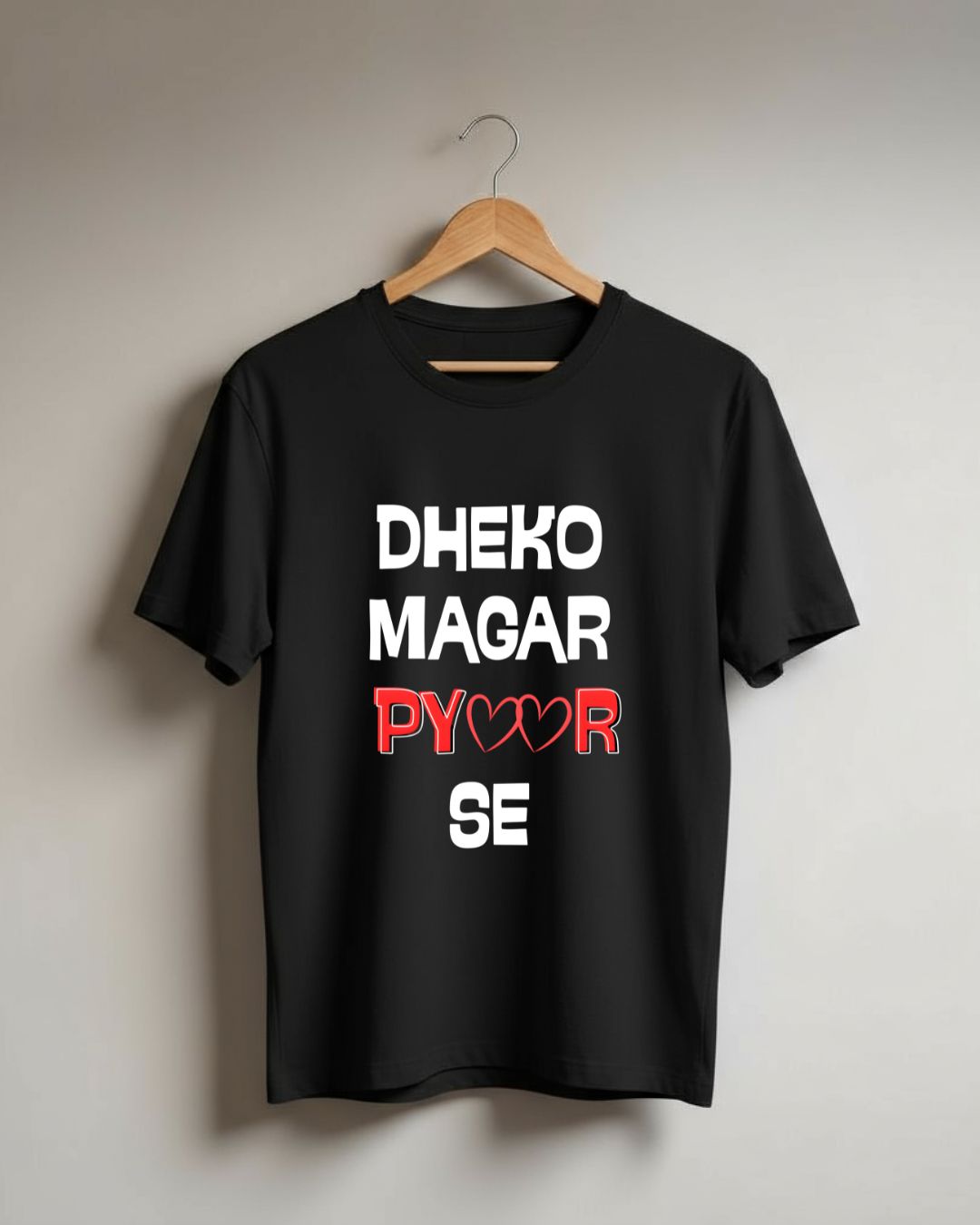 Inspired by iconic Indian truck art philosophy, "Dheko Magar Pyaar Se" means "Watch, but with Love"βa timeless reminder to approach life with compassion and kindness.