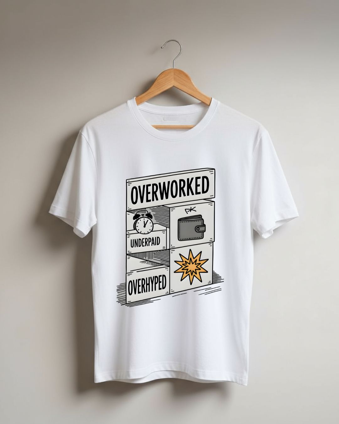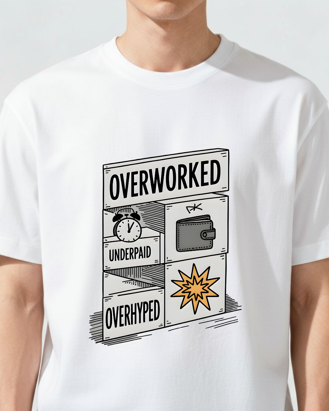 Overworked Underpaid Overhyped Oversized T-Shirt – Work Culture Statement